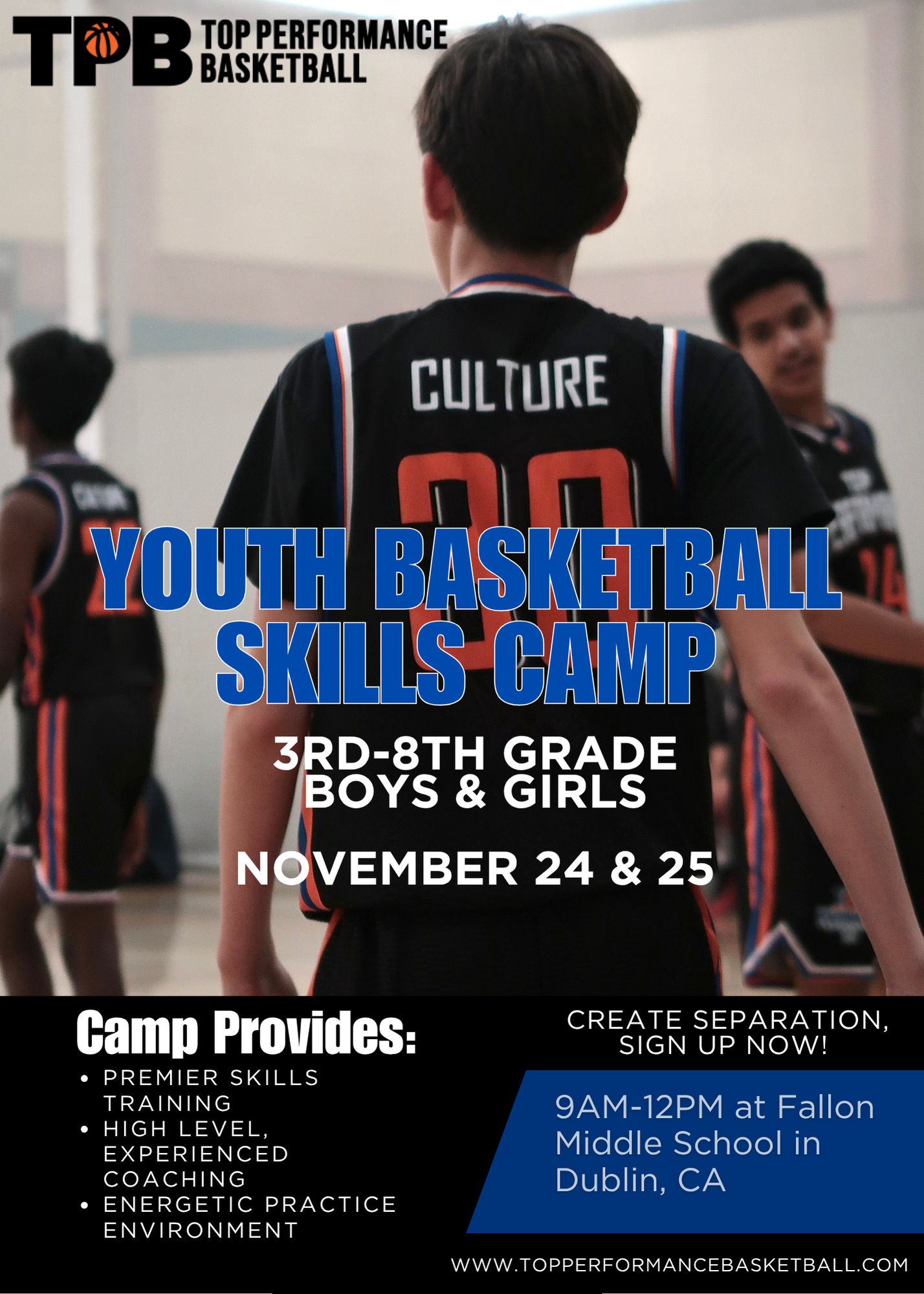 Top Performance Basketball's last basketball camp of the summer. Join us for 2 days of taking your game to the next level- this camp is geared to guide our middle school and elementary school players in reaching the next level. This fun, high-energy camp is open to young athletes of all skill levels and focuses on developing fundamentals, teamwork, and confidence through drills, games, and competitions.
